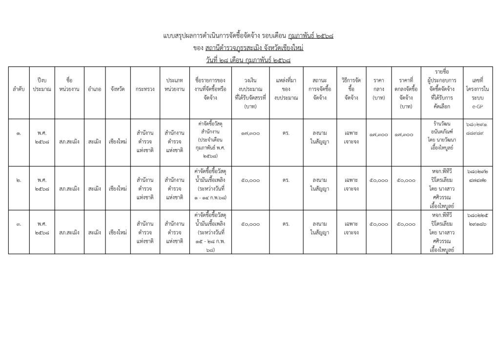 Download เอกสาร สรุปผลการดำเนินการจัดซื้อจัดจ้าง ในรอบดือน กุมภาพันธ์ พ.ศ.2568 ที่นี่ 👇