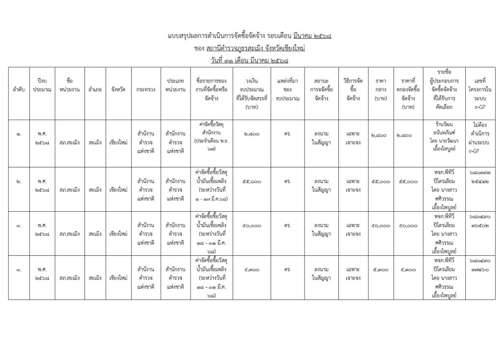 สรุปผลการจัดซื้อจัดจ้าง ประจำเดือน มีนาคม พ.ศ.2568 ในรูปแบบ PDF และรูปแบบ WORD